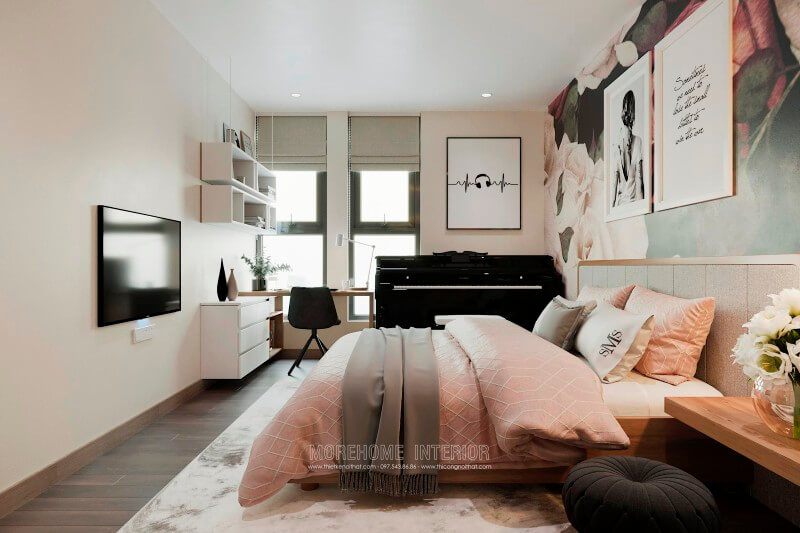 Nội thất phòng ngủ con gái có phong cách hiện đại và màu sắc trang nhã giúp cho gia chủ có một giấc ngủ ngon lành và sâu hơn.