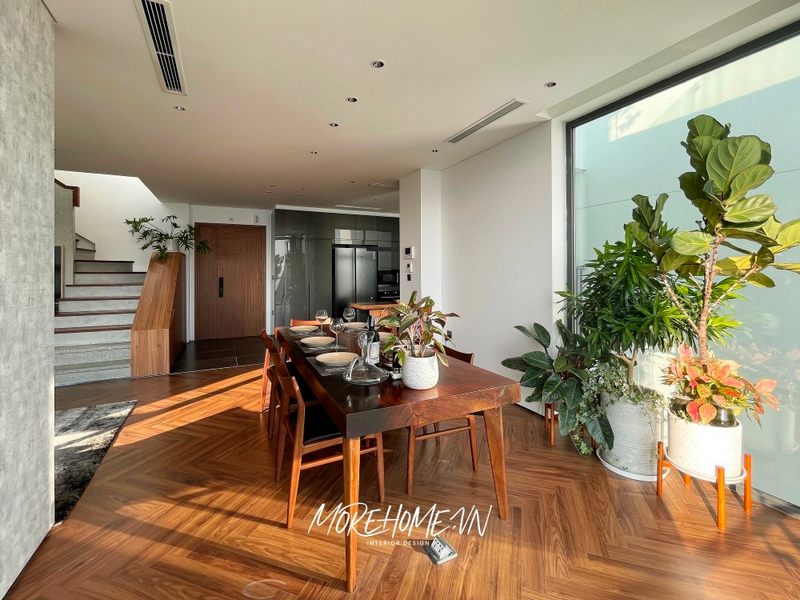 Để tạo nên không gian thoải mái, hãy đặt những chậu cây cảnh để trang trí không gian điều hòa bầu không khí trong lành.